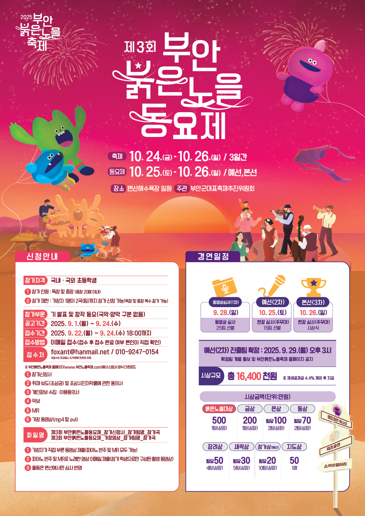체류 관광형 축제로 도약하고자 「제3회 부안붉은노을동요제」를 다음과 같이 개최하오니, 관심 있는 분들의 많은 참여 바랍니다.