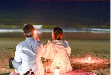 변산의 붉은 노을을 배경으로 남기는 특별한 한 컷